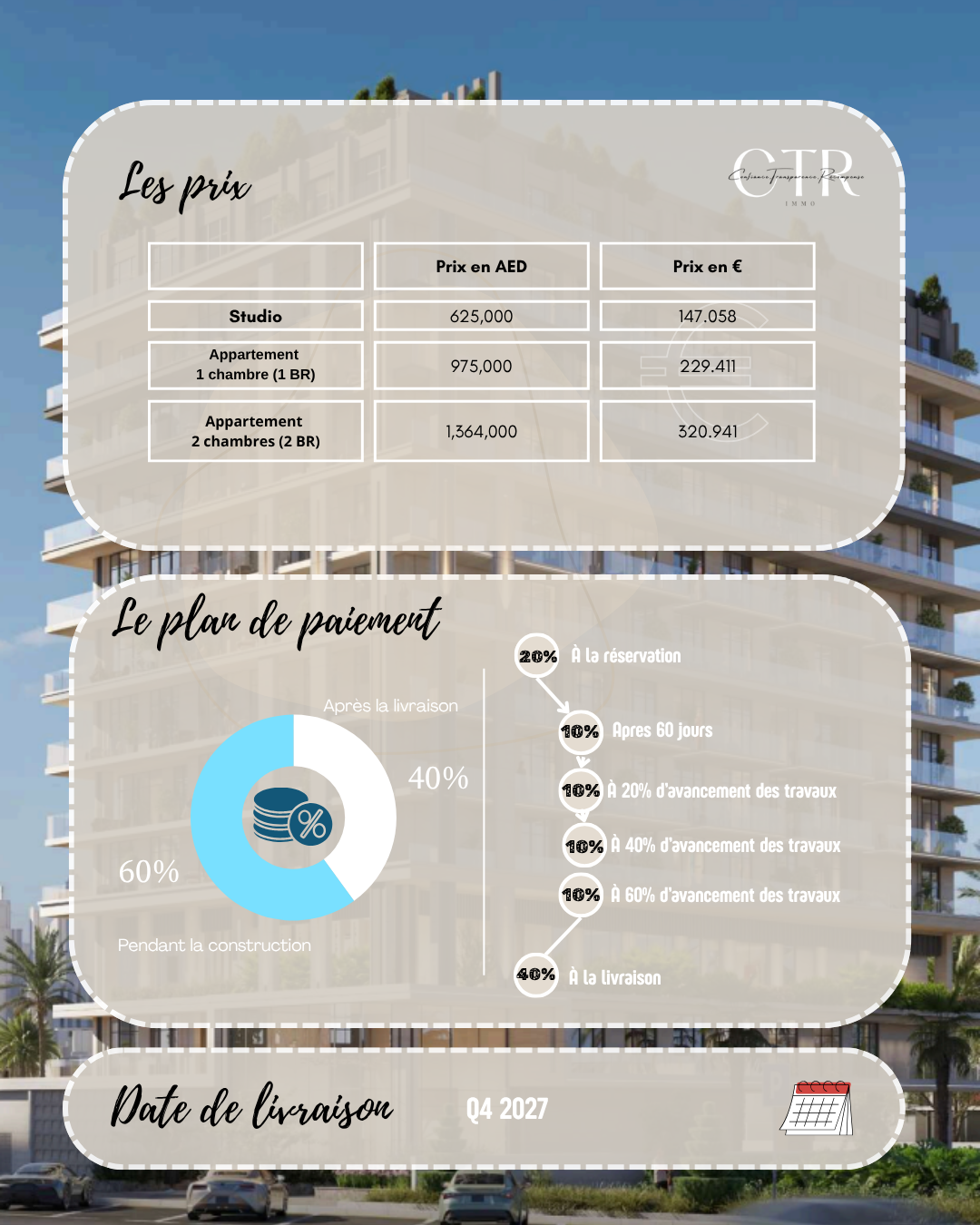 - Appartement 1 chambre à partir de 975,000 AED (229.411€)