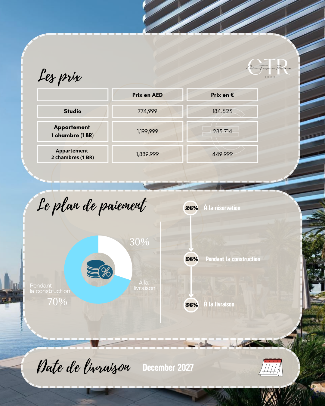 - Appt. 2 chambres  à partir de 1,889,999 AED (449.999€)