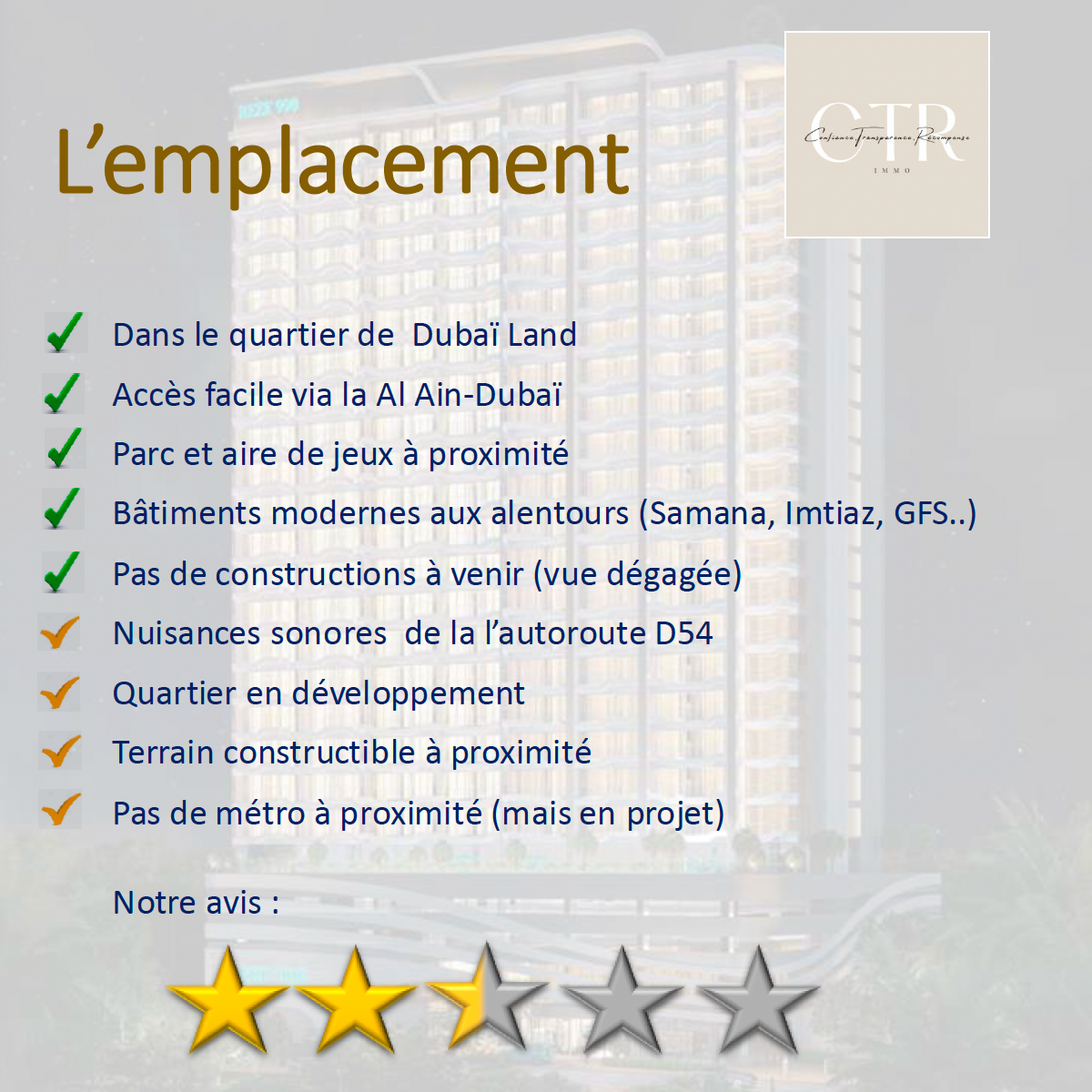 Easily accessible via Al Ain-Dubai Road and the D54, DLRC is seeing an accelerating construction rate. Its location provides a family-friendly living environment close to Academic City for schools, as well as the startups of Dubai Silicon Oasis (DSO). These apartments, from studios to 2-bedroom apartments (fully furnished), will offer very attractive rental yields.