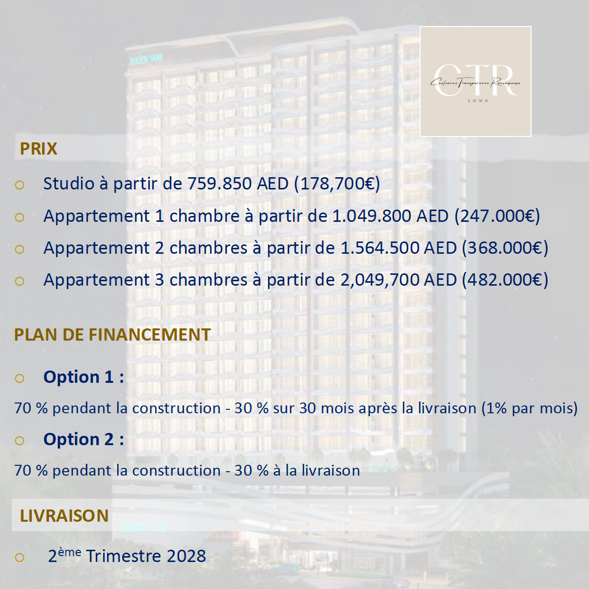 - 2 bedroom apartment from 1,564,500 AED (368,000€)